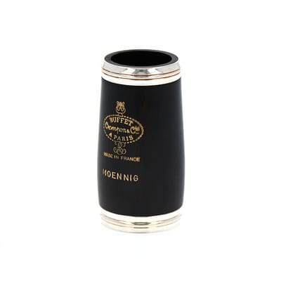 De Buffet Crampon Moennig A-Clarin. Barrel 63mm is een Moennig Böhm A klarinet tonnetje, speciaal ontworpen voor de Prestige klarinet. Met een lengte van 63 mm, heeft dit tonnetje een aangepaste kegel die smaller wordt naar de bodem toe. Dit zorgt voor meer weerstand, waardoor de toon beter behouden blijft. Het tonnetje is vervaardigd uit grenadillehout (dalbergia melanoxylon) en is afgewerkt met verzilverde ringen. Dit product is gemaakt in Parijs.